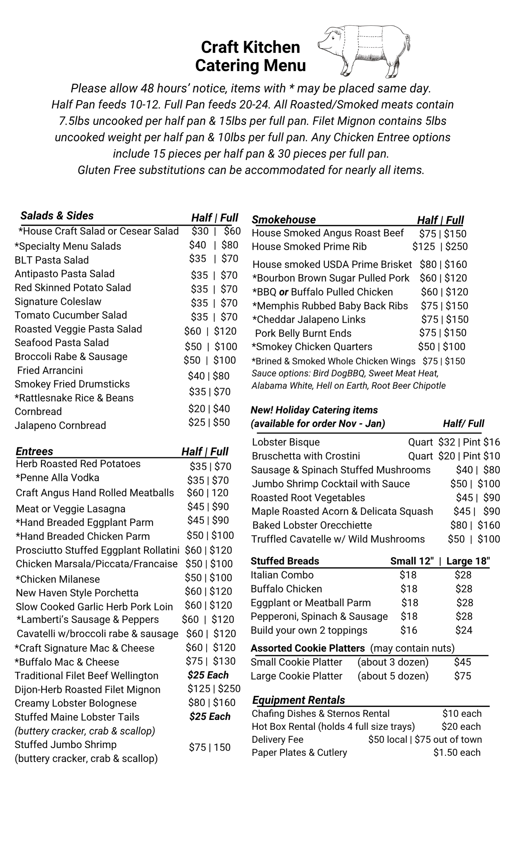 In addition to our pick up catering, Craft Kitchen will cater any event to your specific culinary needs. From menu to rentals, service and clean up, Chef Mike Truss and crew will have you covered. Call to inquire further to talk with Chef Truss to see how Craft Kitchen can suit your event.