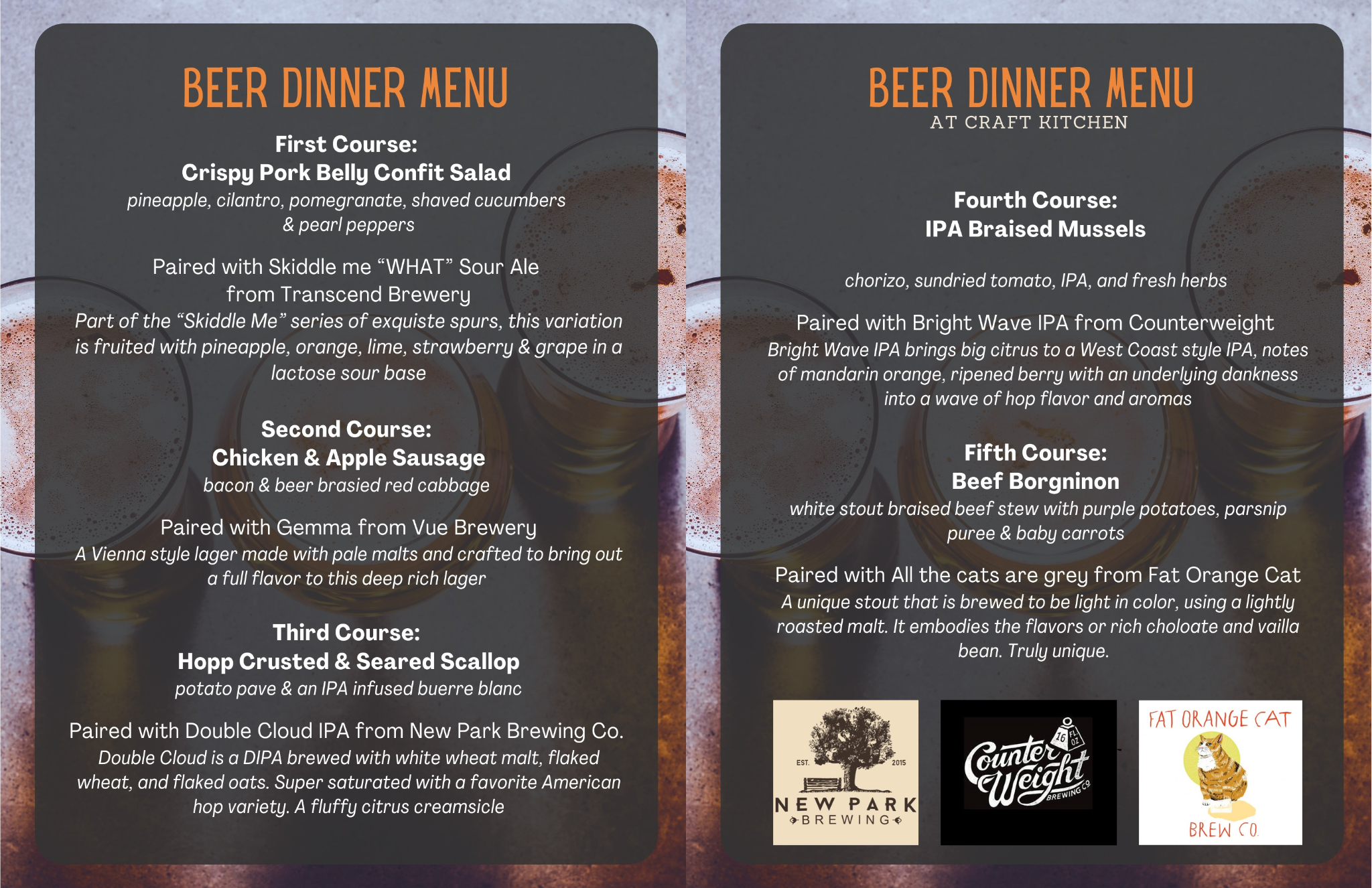 Enjoy a 5 course meal of deliciously hand crafted dishes infused with only the best craft beers from local NE breweries. Sample each beer and learn about their unique flavor profiles & backgrounds.