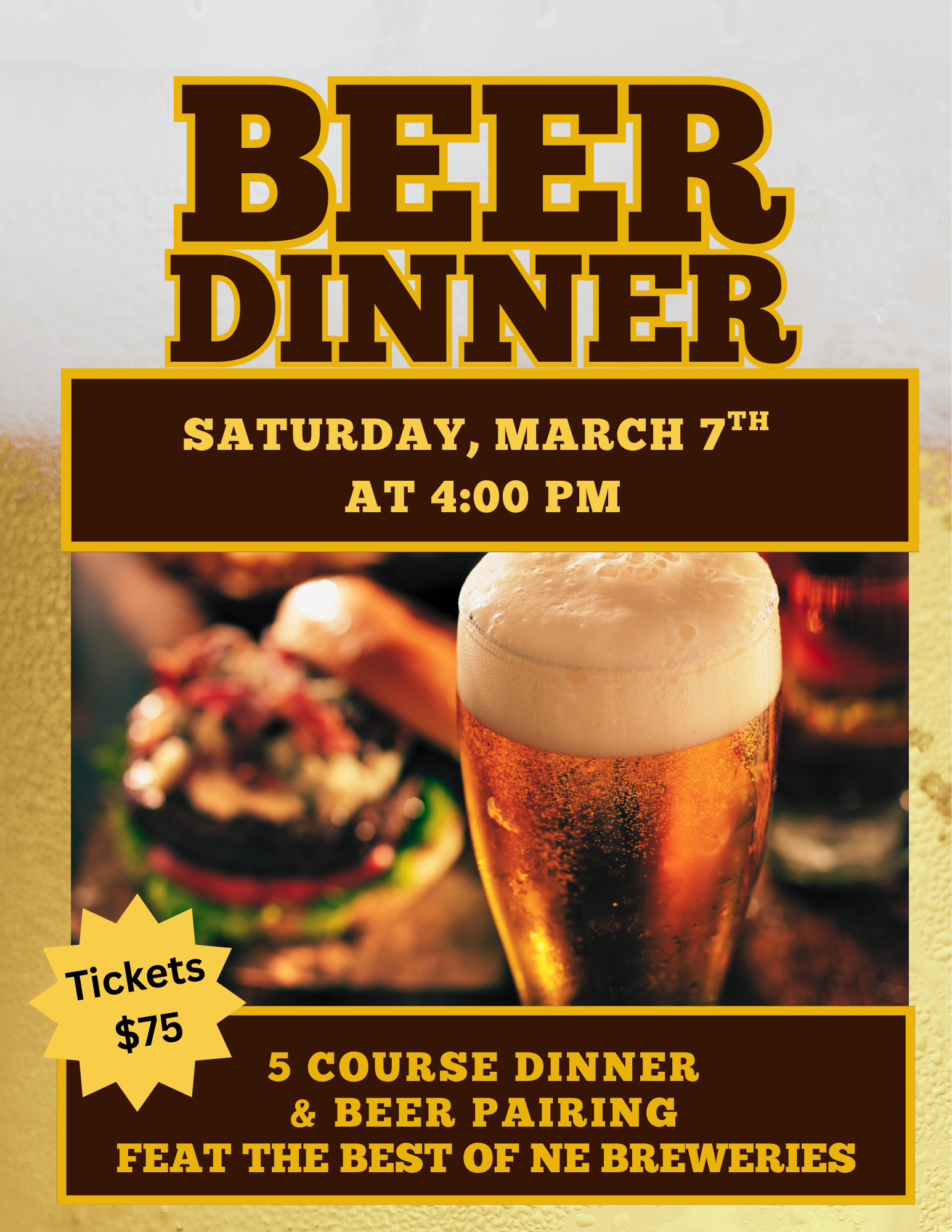 Join us Saturday, March 7th for our next Craft Beer Dinner.